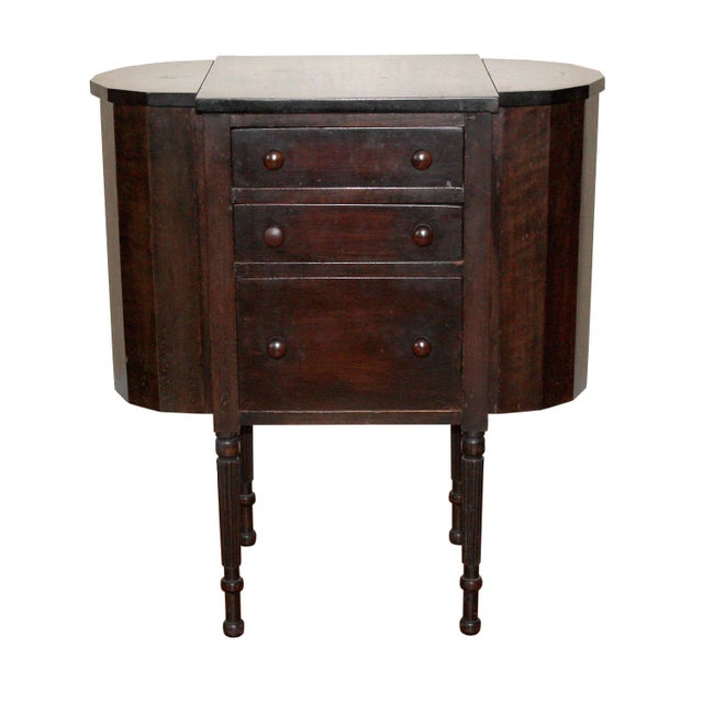 It has three drawers and two large side compartments. 28 11/16 in x 27 3/8 in x 14 3/16 in Today, martha washington sewing cabinets generally have two or more drawers in the center flanked by half round compartments on each side of the cabinet that are covered by a shaped lid attached by concealed hinges. A depression era reproduction it features a hinged top above bowed shaped sides, three stacked drawers to center; Page 1 of 1 start over page 1 of 1. They called it a work table. They were made in many similar designs. October 13, 2019 1 found this helpful. Never knew that they made them w/the inlays. Vintage martha washington sewing cabinet cir. Thank you, know that you told me what it is it makes sense. Went specifically to pick up this federal style martha washington sewing cabinet. Cowan furniture closed in circa 1916.
